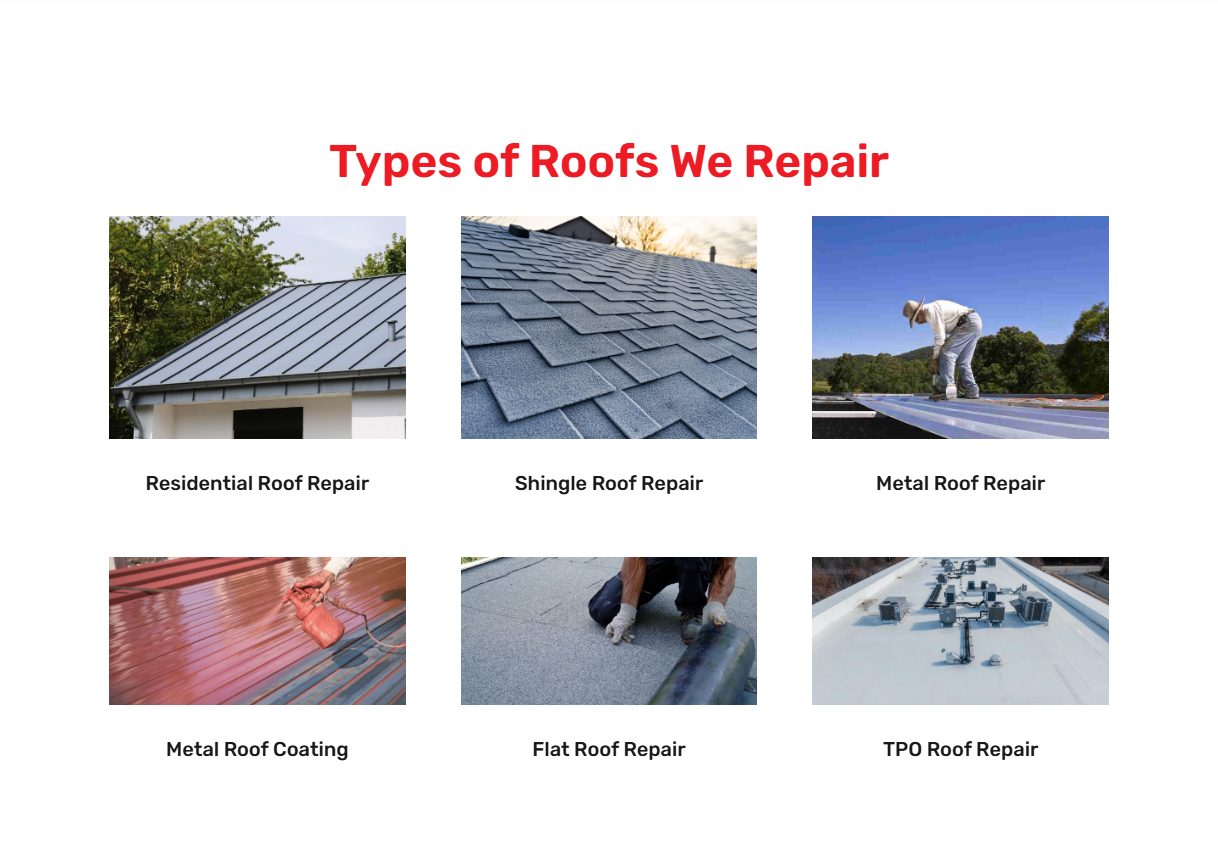 We repair all types of roofs: tile roofs, metal roofs, tile-metal composite roofs, flat roofs, and TPO roofs.